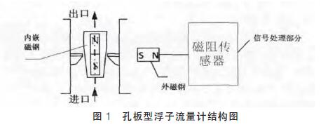 浮子流量計是以浮子在垂直錐形管中隨著流量變化而升降, 并以此來改變它們之間的流通面積來進行測量的體積流量儀表。浮子流量計起源于19世紀60 年代,因其結(jié)構(gòu)簡單,工作可靠,壓損小且穩(wěn)定,可測低速流速介質(zhì)等優(yōu)點一直廣泛應用于氣體、液體的流量測量和自動控制系統(tǒng)中。其中常用的孔板型浮子流量計如圖1所示。