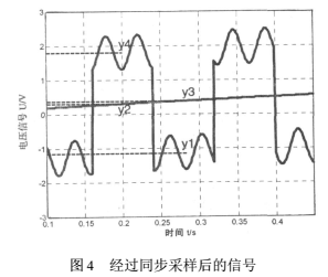 對(duì)于基線零點(diǎn)漂移,“正負(fù)差值法”是比較有效便捷的選擇,它不需要直接消除信號(hào)中的基線零點(diǎn)漂移,而是通過(guò)算法上去掉基線零點(diǎn)漂移對(duì)測(cè)量結(jié)果的影響。該系統(tǒng)中,激磁信號(hào)的頻率為6.25Hz,由于所測(cè)量的液體流速不會(huì)有明顯的突變,所以在信號(hào)的一個(gè)周期0.16s內(nèi),可以采用一個(gè)波峰減去波谷的均值來(lái)表示此時(shí)的流量信號(hào),也即如圖3中|y4-y1|其中y4是從nT+T/4到nT+T/2采樣結(jié)果的算術(shù)平均值,y1是從到(n+1)T進(jìn)行采樣結(jié)果的算術(shù)平均值。但是由于斜率零點(diǎn)漂移的存在,會(huì)出現(xiàn)如圖3中|y3-y2|的誤差,所以需要利用式(15)的結(jié)果對(duì)該誤差進(jìn)行修正,修正后的結(jié)果也就是此時(shí)管道中液體感應(yīng)出的電動(dòng)勢(shì)為: