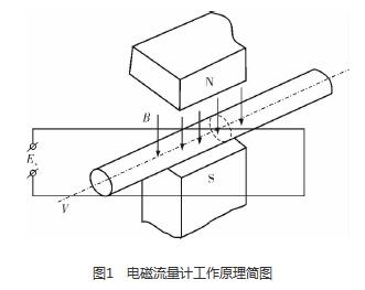 污水處理廠進水流量計是利用法拉*電磁感應(yīng)定律設(shè)計的流量測量儀表,用于測量導電液體的體積流量。根據(jù)法拉*電磁感應(yīng)定律,當導體切割磁力線運動時,導體內(nèi)將產(chǎn)生感應(yīng)電動勢Ex(圖1),方向根據(jù)右手定則確定,感應(yīng)電動勢Ex的大小與磁場的磁感應(yīng)強度B、傳感器管道的內(nèi)徑D和流過導電液體的流速V成正比,B、D、V三者相互垂直,即Ex=BDV。