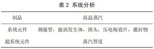 1)定義技術(shù)系統(tǒng)實(shí)現(xiàn)的功能。問題所在技術(shù)系統(tǒng)為二氧化硫流量計(jì)傳感器系統(tǒng);該技術(shù)系統(tǒng)的功能為轉(zhuǎn)換信號(hào);實(shí)現(xiàn)該功能的約束:測(cè)量精度為 ±1%,成本提高控制在 20% 之內(nèi)。