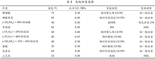 防腐型電磁流量計要根據(jù)被測流體的溫度、壓力、速度以及含固顆粒的硬度、含量和粒徑大小來決定測量管內(nèi)襯的材質。該濕法磷酸裝置中,防腐型電磁流量計測量管襯里材質的種類見表 2。