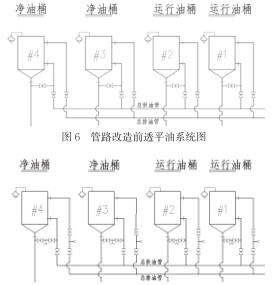 (2)改造后,單個油桶內(nèi)透平油的過濾和轉(zhuǎn)移工作中需操作的閥門減少(僅需操作2個支管上小通徑的閥門),極大地簡化操作流程。改造前,每個油桶的油必須流入油處理室中的機組透平油供油和回油總管上,才能再次經(jīng)支管閥門進入相應油桶,好少要操作四個閥門(包括總管上臨時接口的大通徑閥門)。