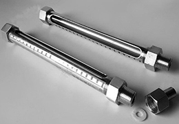 玻璃板、玻璃管液面計為直觀液位測量儀表,用來直接或間接地指示各種塔、罐、槽、箱等容器的液面位置(油、水、酸、堿、鹽等各種介質(zhì))儀表兩端各裝有一個針型閥,當(dāng)玻璃管發(fā)生意外事故而破碎時,針型閥在容器壓力作用下自動關(guān)閉,以防止容器內(nèi)介質(zhì)繼續(xù)外流。
